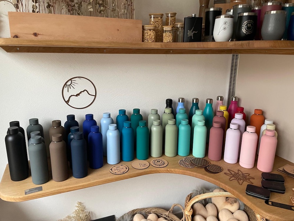 Hier finden Sie einen grossen Teil unserer Farben der Isolierflaschen in den Grössen von 5 dl und 7.5 dl. Je nach Saison können diese Farben etwas varieren. Bitte fragen Sie an.